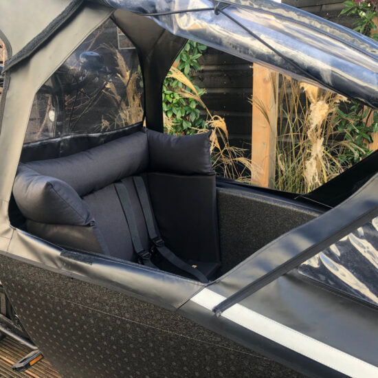Dit bakfietskussen is prima te gebruiken in combinatie met de regenhuif essential of raincover plus.
